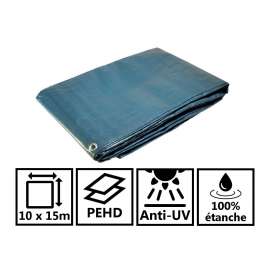 Bâche Travaux Etanche Polyvalente bleue 10 x 15 m 150g/m² Bâche de protection...