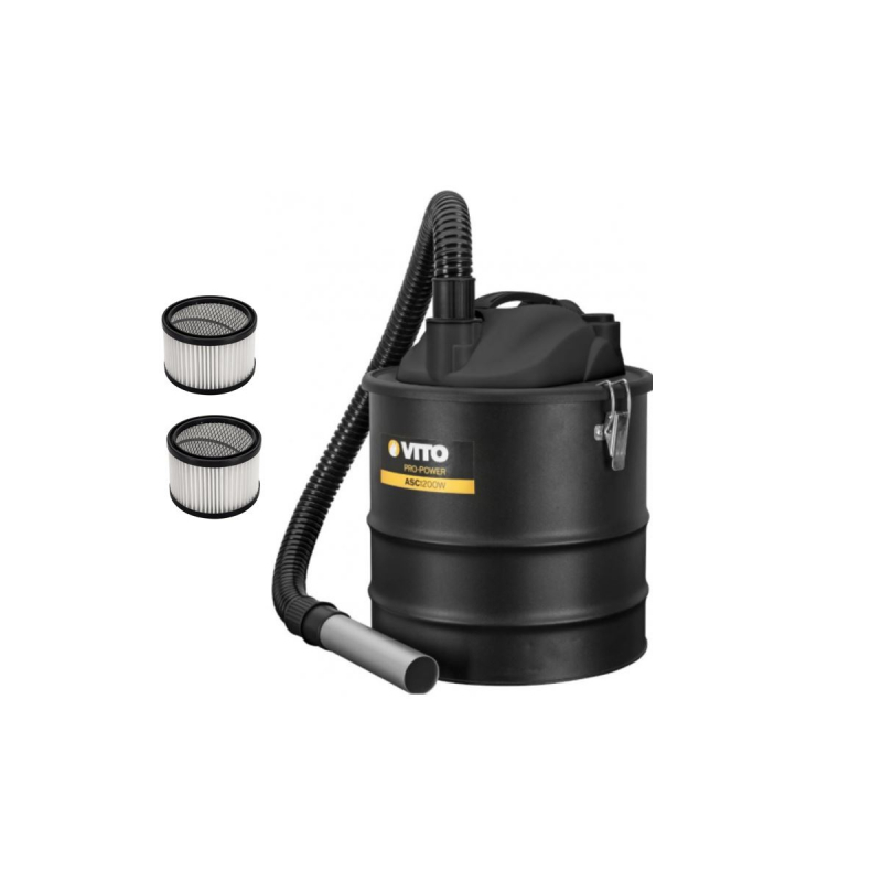 L'aspirateur de cendre VITO possède une puissance de 1200W et est muni d'une cuve de 18L qui limitera ainsi les vidanges. Il possède un tuyau d'aspiration flexible d'une longueur d'1 mètre et un embout de 200 mm en métal.