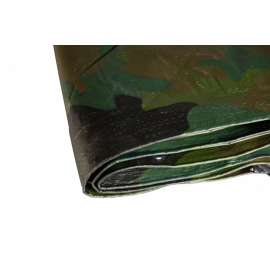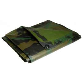 Bâche camouflage 150 g/m². Camouflage militaire 3,6 x 5 m verte/noire - Toile camouflage multi-usages en polyéthylène. Prête à l'emploi - Voile de camouflage avec œillets métalliques tous les 50 cm et ourlet périphérique - Bâche avec coins renforcés pour une tenue optimale.