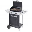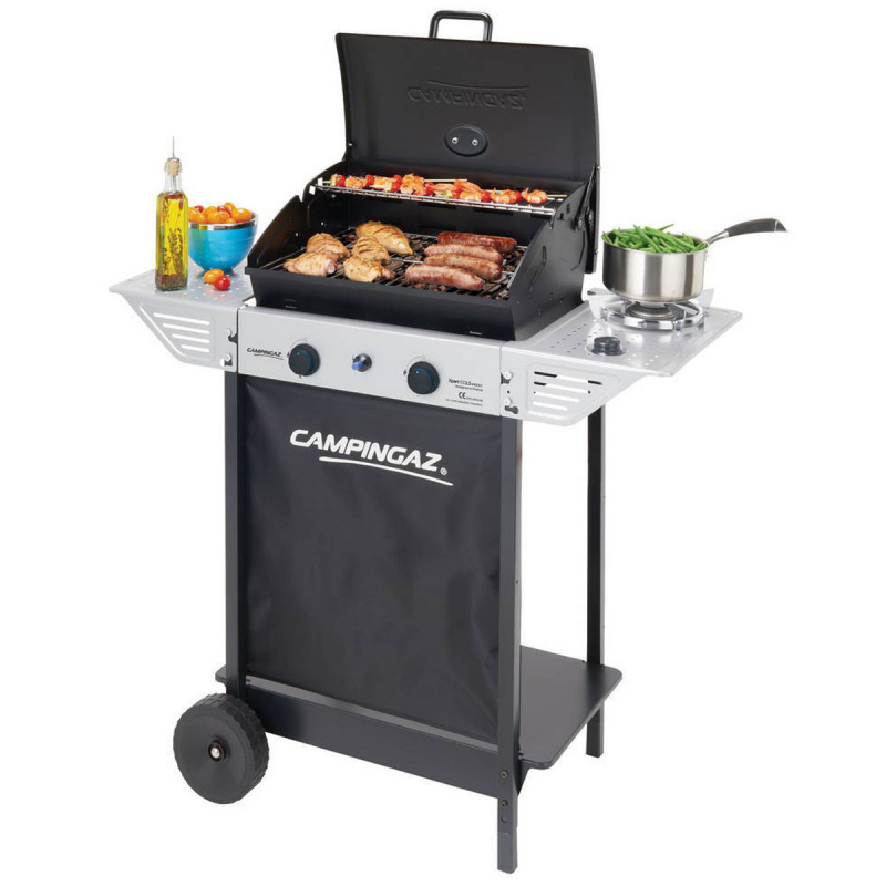 Barbecue Campingaz XPERT 100LS. Cuisson pierre de lave (non fournie). 2 brûleurs en acier puissance 7,1 kW + bruleur latéral 2.1 kW. Consommation gaz max 515 g/ h. Réchaud latéral allumage piezo. Surface de cuisson de 44,5 x 34,5 cm. Hauteur de cuisson 85 cm. Thermomètre intégré. 2 roues robustes + cache bouteille tissu + couvercle haute résistance. Dimensions H99 x 98 x 44.5 cm. Poids 19 kg.