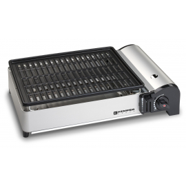 Compact et pratique, il est doté d'un grand foyer de cuisson avec 2 grilles de 36 x 28 cm et d'un couvercle équipé d'un thermostat témoin de température.