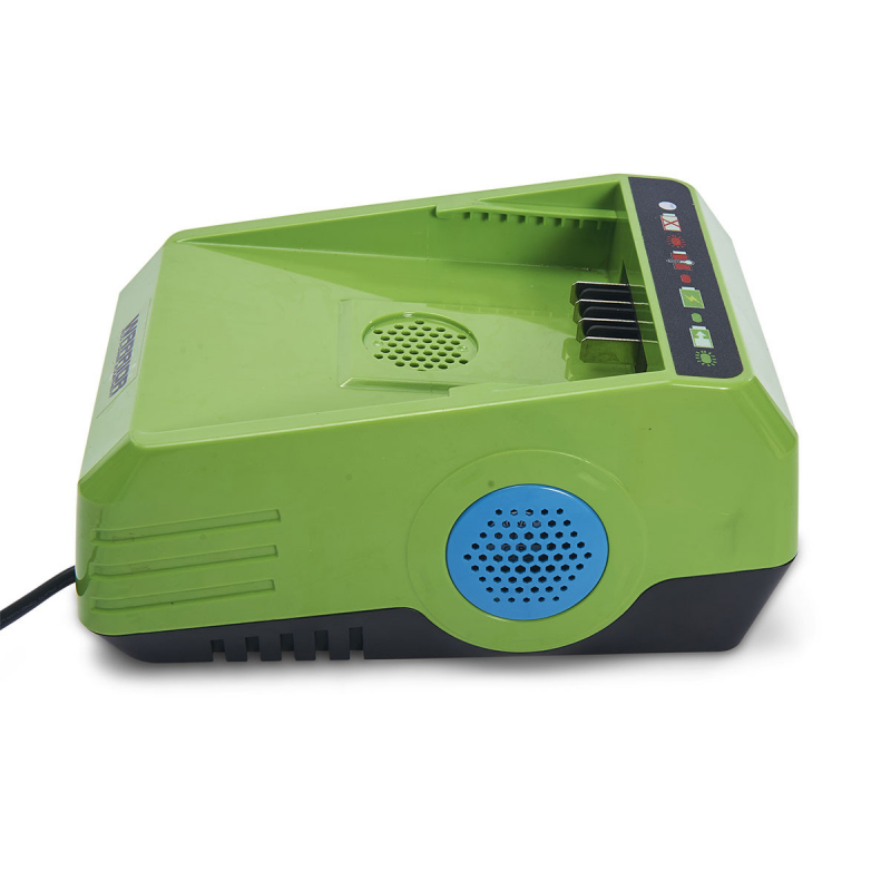 Ce chargeur 60V est doté d'un astucieux et instructif "affichage des indications de charge". Il est également doté d'un système intelligent de contrôle à double ventilateurs qui indique quand la batterie devient trop chaude et lance automatiquement un processus de refroidissement.