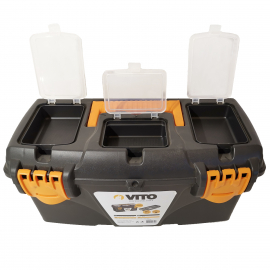 La boite à outils 16'" VITO est robuste, elle fait 410 x 209 x 195 mm. Caisse à outils multi-rangement haute résistance VITO - Polyvalente, vous l'utiliserez pour ranger, emporter ou stocker.