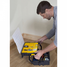 La boite avec organisateur 23 compartiments STST1-75540 de STANLEY est idéale pour ranger vos pièces d'outillage lié au bricolage. Avec ses 12 compartiments au niveau supérieur et 11 au niveau inférieur, l'organiseur offre deux fois plus de contenance que les organiseurs de même gabarit.