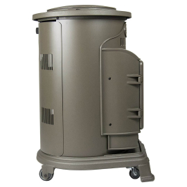 Chauffage d'appoint à gaz Provence design, puissance 3400W couleur Marron Miel en fonte véritable ! Fonctionne avec une bouteille de gaz butane 13kg. 4 roulettes, 2 niveaux de chauffe, consommation max de 245 g/h. Chauffe un espace de 40-80 m². Autonomie : 60 heures à pleine puissance. Allumage piezo. Sécurité thermocouple. Poids 37 kg.
