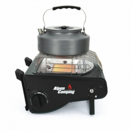 Chauffage à gaz ALPEN CAMPING 1700W 2en1. Chauffage et réchaud. Allumage Piezo facile à utiliser. Alimentation par cartouche de gaz butane standard. Consommation maximale : 124 gr/h. Chauffe rapide et constante. Panneau en céramique. Système de sécurité. Doté du système HSC (Heating System Cardrige) qui garantit une efficacité maximale même à des températures négatives. Compact et léger. Dimensions 30.5 x 20 x 33 cm.