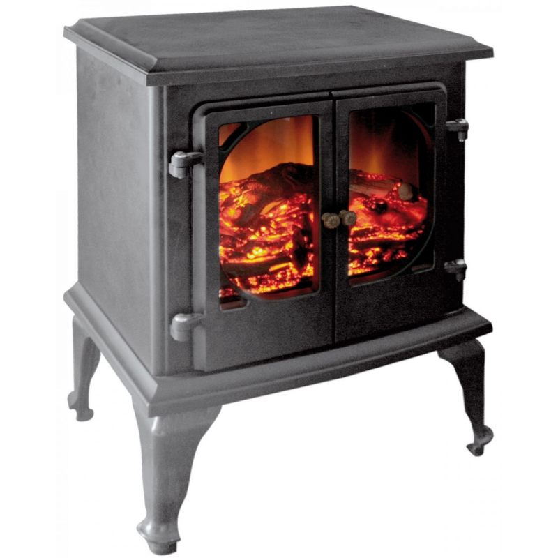 Cheminée/poêle électrique VULCANO NIKLAS. Radiateur effet feu de cheminée. Puissance 2000W. Corps en polypropylène. Robuste et stable. Dimensions 47 x 31 x 63 cm. Poids : 13kg.