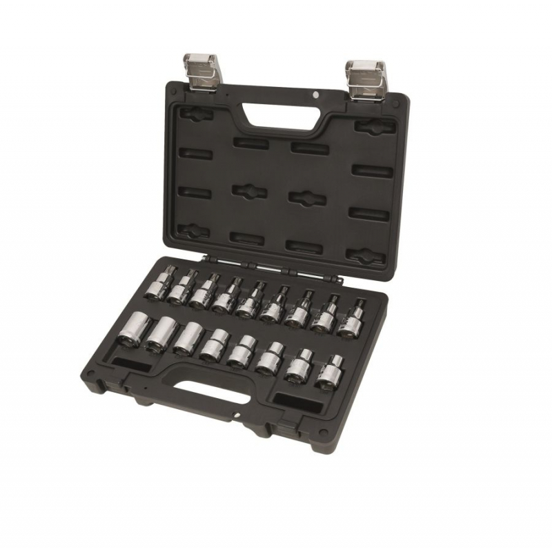 Mallette d'assortiment de 17 clés à douille pour vis à profil torx. Connexion 1/2 "