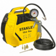 Compresseur d'air STANLEY 1.5 CV. Pression max 8 bar. Léger et polyvalent. Petit et pratique. Poignée de transport. Sans huile. 1 remplisseuse, tuyau et pistolet. Livré avec pistolet de gonflage, kit de 3 aiguilles de gonflage pour ballons, buse de soufflage, tuyau en caoutchouc de 3 mètres. Niveau de puissance sonore : 97 dB(A). Poids 6 kg.
