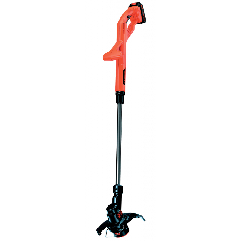 Coupe-bordure sans fil BLACK + DECKER ST182320-QW. Batterie au lithium 18V - 2Ah. Chargeur. Largeur de coupe 25cm. ⌀ du fil : 1.6mm. 1 bobine de fil. Vitesse de coupe : 9000 trs/min. Transmission bi-étagée E-drive. Manche en métal télescopique. Tête pivotante à 180°. Poignée réglable 5 positions. Poids 3.1kg.
