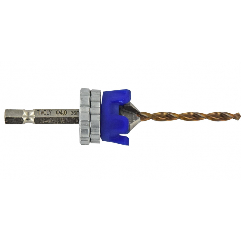 Foret en acier rapide HSS de diamètre 4 mm avec géométrie spéciale BOIS/METAL avec affutage auto centrant pour un perçage rapide et préçis. Fraise à noyer en acier rapide HSS à 90° pour un fraisage endurant net et sans bavure. Entièrement perforée, la fraise permet un changement facile du foret une fois usé ou cassé. Butée en matière composite chargé en fibre pour aucun marquage des surfaces et une résistance au frottement, butée de profondeur réglable sans outils par un système d'écrou/contre écrou pour ajuster le fraisage jusqu'à un diamètre de 12.4mm, foret avec queue hexagonale 6.35 identique à celle des embouts de vissage pour un transfert hyper rapide des opérations de perçage et de vissage. Le Kit Spécial Terrasse breveté par TIVOLY va grandement révolutionner le montage des terrasses bois ou métal et va vous faire gagner 50% de temps de travail ! Composé d'un Foret HSS avec queue Hexagonale interchangeable pour percer et chanfreiner à 90° les bois durs, aciers, alu, fontes et plastiques pour usage intensif et répétitif + Fraise à noyer + butée réglable Ø4mm très pratique pour régler la profondeur de chanfrein. Inclus une clé pour changer le foret rapidement sans contrainte. Monté sur adaptateur hexagonal 6.35mm pour montage sur visseuse. Produit professionnel haute qualité et de longue durée de vie.