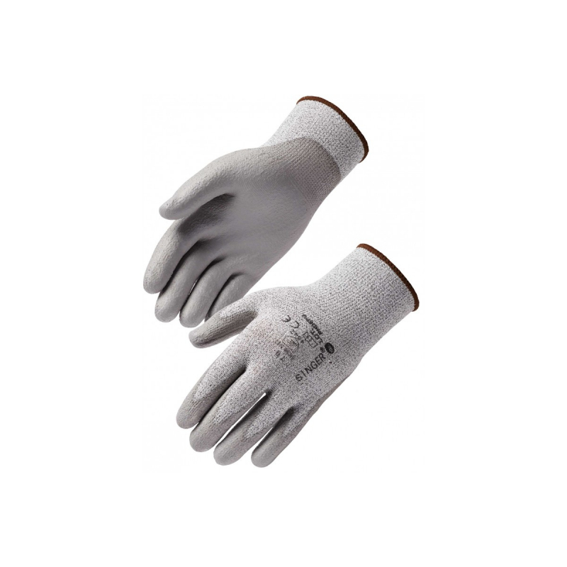 Gant de protection anti-coupure (Coupure C). Support PEHD. PU sur la paume.Support tricoté à partir de fibres haute ténacité HDPE, (Polyéthylène haute densité PEHD),fibres polyamide et fibres de fibres. Enduction latex crêpé souple sur la paume. Dos aéré. Poignet élastique. Coloris gris/noir.