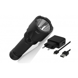 Lampe torche ASLO Professionnelle puissante haute qualité qui fournit un éclairage parfait et durable Rechargeable facilement à l'aide du chargeur avec port USB inclus et via une prise 230V. Elle fournit 1000 lumens d'éclairage et une portée extraordinaire d'environ 280 m, conçue pour un usage professionel. Prise en main ergonomique et sûre. Corps en aluminium durable qui résiste à l'eau IPX8.