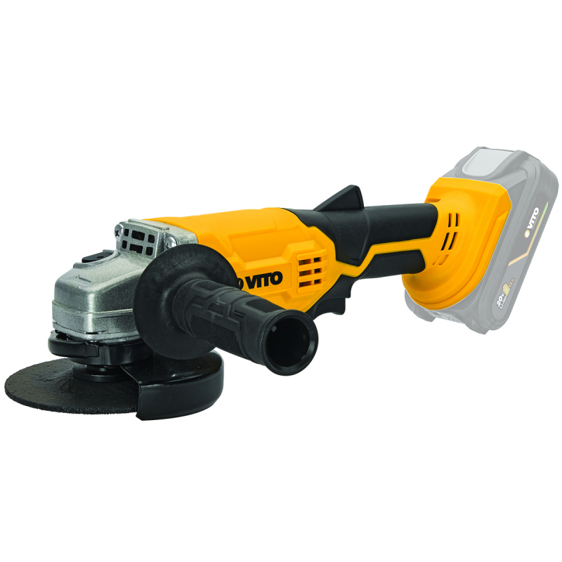 Meuleuse angulaire sans fil 20V Lithium ion VITO EGO LI. Vendue sans batterie ni chargeur. Diamètre de disque 115 mm, vitesse de rotation 10000 tr/min. Fonctionne avec les batteries lithium-ion compatibles avec tous les outils de la gamme VITO EGO LI 20V.