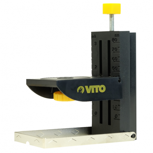 Support de table VITO pour niveau laser et appareils photos. Réglage ultra-précis de la hauteur par une molette millimétrique. Hauteur max : 11 cm. Attache magnétique. Vis 1/4" compatible tout appareils.