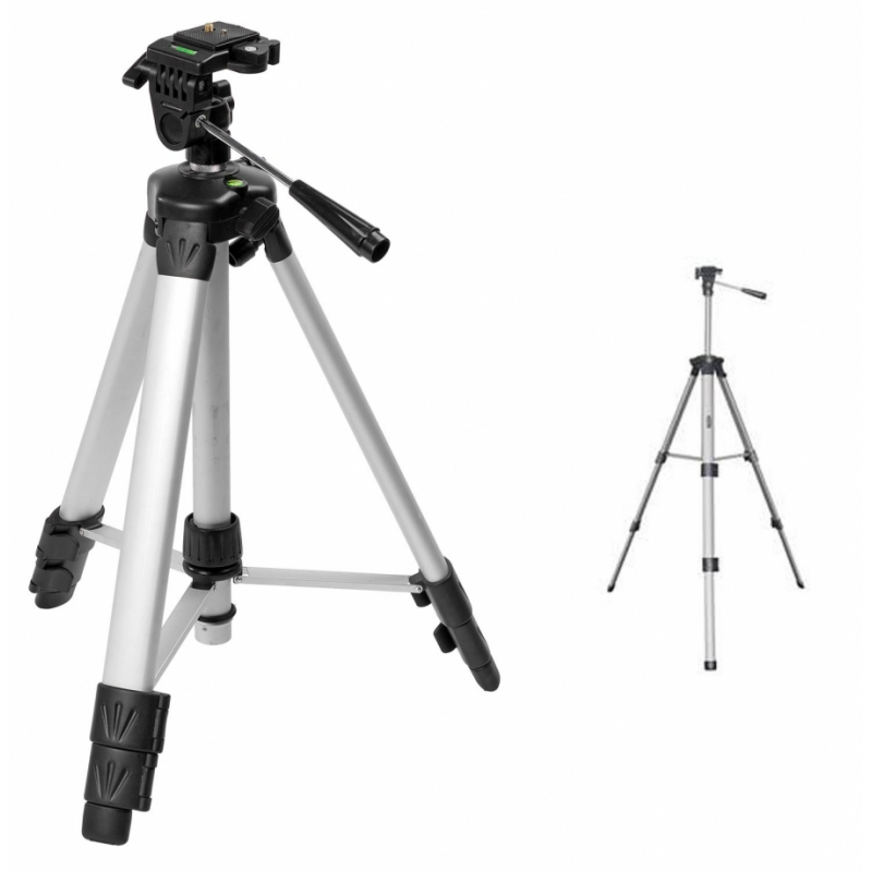Trépied STANLEY 1-77-201 en aluminium avec crémaillère. Hauteur de 50 à 150 cm. Adaptateur inclinable. Filetage 1/4". Tête panoramique. Dimensions : 11 x 59 x 11 cm. Poids : 1.06 kg