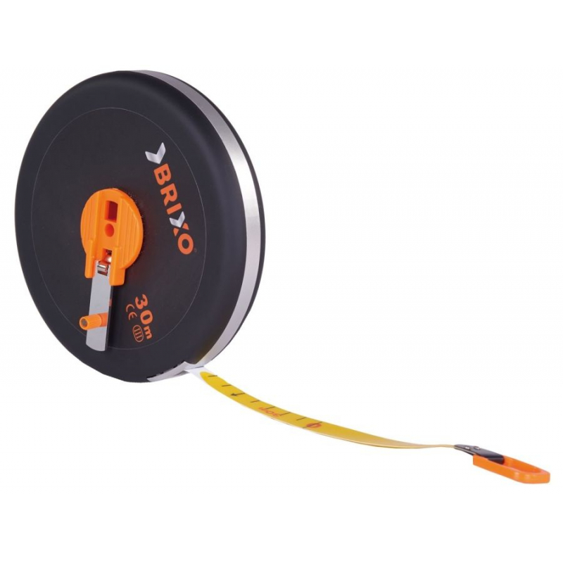 Mètre ruban déroulant 30 m en fibre résistante BRIXO. Coque soft-touch, bande 15 mm. en fibre de verre résistant à l'abrasion et à la tension