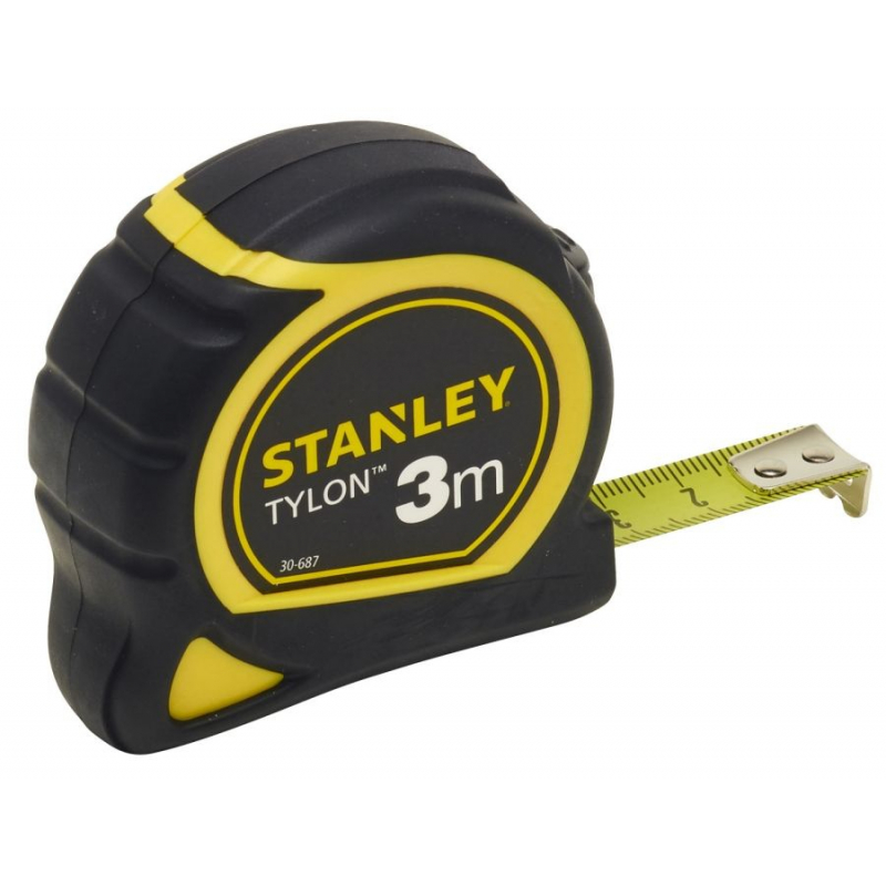 Mètre mesureur de 5 mètres. Marque STANLEY. Boîtier en ABS antichoc avec revêtement en caoutchouc entièrement antidérapant. Ruban professionnel avec peinture polymérisée et enduit d'un film synthétique Tylon mat (épaisseur 0,14 mm). Clip crochet