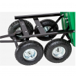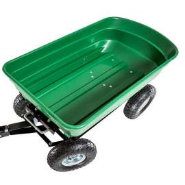 Chariot de jardin polyvalent structure axe mobile en acier et remorque en polypropylène épaisseur 5 mm basculante charge maxi 250 kg capacité 75 litres. 4 roues gonflables Ø 26cm. Poignée confort. Idéal pour votre jardin chantier ferme etc terre, tourbe, engrais, fumier etc.. Cuve très robuste lavable et durable.