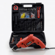 Accessoires : Mallette + 41 accessoires ( 1 Pince Universelle, 1 Tournevis Lame Plate, 1 Marteau, 1 Clé à Molette; 1 Mètre, 12 Embouts, 1 Adaptateur pour Embouts, 9 Douille, 1 Cutter, 5 Forets Bois, 5 Forets Métal, 5 Forets Pierre, Jeu de Vis et Chevilles, Jeu Brosses de charbon )