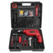 Perceuse à percussion ITOOLS d'une puissance de 500 W. Réglage de la vitesse de rotation jusqu'à 2800 tr/min. Perce le bois jusqu'à 25 mm, le métal jusqu'à 10 mm et le béton jusqu'à 13 mm. Fournie avec une mallette et 41 accessoires.