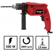 Vitesse de rotation est de 2800 tr/min, l'appareil est équipé d'un mandrin auto serrant 13 mm et muni d'un système de réglage de la vitesse et de changement de sens de rotation.