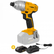 Visseuse à percussion 20V sans fil Lithium Ion VITO EGO LI avec batterie 2Ah + chargeur rapide. Mandrin a blocage rapide de 1/4" 6.35 mm , couple de 180 nm max. Utilisations : vissage dévissage .