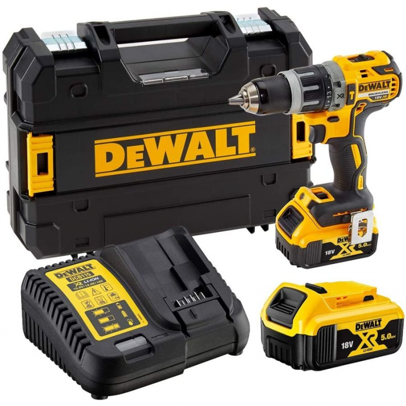 Perceuse sans fil à percussion 18V XR Lithium avec batterie 5.0Ah. Possibilité d'utiliser la percussion pour le perçage de la maçonnerie. 15 points de réglage du couple pour un réglage correct dans chaque application