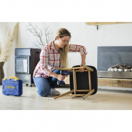 Perceuse-visseuse GOODYEAR sans fil 12V + batterie 1,3 Ah et son chargeur rapide. 2 vitesses mécaniques. 1 inverseur de rotation pour visser et dévisser à sa guise. Vitesse de rotation réglable sur la gâchette. Perçage tout matériaux. Éclairage LED pour une meilleure visibilité. Poignée ergonomique Softgrip pour une prise en main confortable. Mandrin auto-serrant Ø 10mm. Livrée dans un coffret avec fermoirs, un chargeur rapide, une batterie 1.3Ah, 1 porte embout, 6 embouts de vissage. Poids 2.4kg.