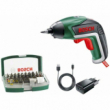 Visseuse / Tournevis sans fil Bosch IXO. 3.6 V / 1.5 Ah. Couple 4.5 Nm. Vitesse 215 trs/min. Ø vis 5 mm. Chargeur USB. Témoin de charge LED. Jeu d'embouts 32 pièces. Poids 0.6kg.