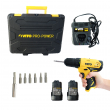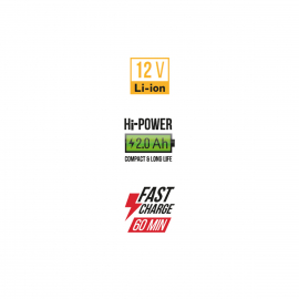 Visseuse sans fil 12V VITO PRO-POWER. 2 batteries Lithium de 2.0 Ah Haute puissance. Durée de charge des batteries ultra rapide 60min. Eclairage LED. Pour un total confort 2 vitesses de travail. Fonction réversible. 6 Embouts de vissage inclus dans le pack. Fonction arrêt rapide -1100 tr 1100/mn. Diamètre max de forêt 10 mm. Mallette. Poids 1.1 kg.