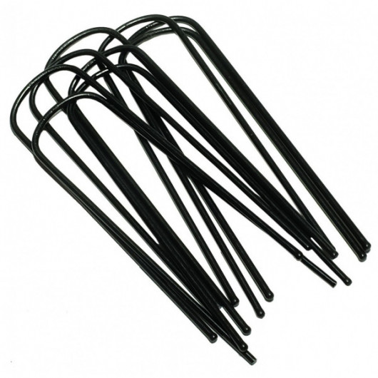 Les piquets pour la toile de paillage sont conçus pour une maintenir et fixer votre toile de paillage. Ces fixations pour paillage talus sont vendus par lot de 10. Leur longueur de 10 cm est largement suffisante et leur forme en U très pratique pour fixer la toile de paillage. Ils ont un espacement minimum (tête) de 2,5 cm et espacement maximum (pieds) de 4 cm.
