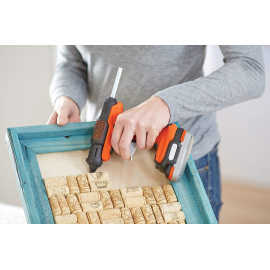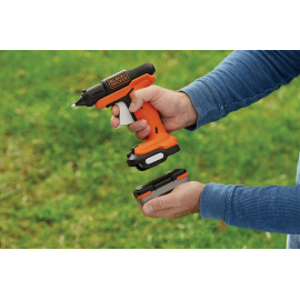 Le pistolet à colle à batterie 12V BLACK &DECKER est facile à utiliser, compact et léger. Il est idéal pour vos projets. Prêt en moins d'1 minute et avec 45 minutes d'autonomie ! Livré sans batterie et sans chargeur.