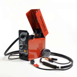 Portable et facilement manipulable, il est doté d'un régulateur de la vitesse du fil. Une pince de masse et un masque sont fournis avec l'appareil.