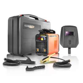 Le poste a souder PROARC est emballé avec une mallette en PVC renforcé et livrée avec un câble de masse, un câble avec pince porte-électrode, un masque et un marteau brosse. Dispose de la garantie constructeur de 3 ans !