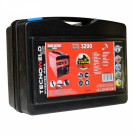 Poste à souder TECNOWELD Inverter 130A ES3200 monophasé compact. Equipé d'un transistor IGBT (Insulated Gate Bipolar Transistor) et d'un microprocesseur. Permet de souder les baguettes en acier, inox ou fonte de 3.2 mm. Pack Spécial avec CAGOULE RED AWELCO protection 9/13 à déclenchement automatique + Masque à main, marteau, brosse et sangle de transport inclus dans la mallette.