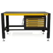 Établi de bricolage meuble professionnel 4 tiroirs de rangement VITO. Pieds réglables. Charge max : 2 tonnes. Revêtement résiste aux rayures et aux chocs. Dimensions : 150 x 78 x 90 cm. Pieds réglables (entre 88 et 92 cm). Idéal pour le bricolage, menuiserie, soudure. Polyvalent et pratique. Organisation aisée. Utilisation intensive.
