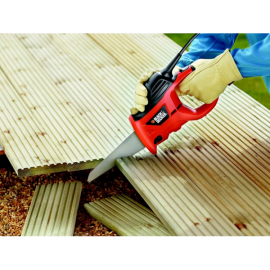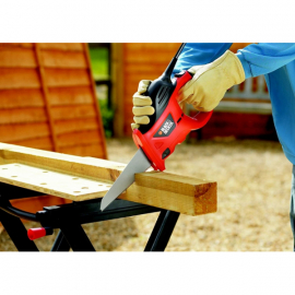 La scie multifonction Black + Decker coupe le bois, le métal et le plastique coupes droites ou courbes avec choix du mode de coupe.