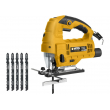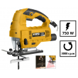 Scie sauteuse VITOPROPOWER750W équipée d'un guidage laser et d'un éclairage LED. 9 vitesses réglables. Rotation de l'appareil à 45°. Protection de la lame. Vitesse de rotation 3000 tr/min. Fonction pendulaire. Buse d'extraction de la poussière adaptée pour aspirateur. Idéale pour découper le bois jusqu'à 110mm, l'acier jusqu'à 10mm et l'aluminium jusqu'à 20mm. Livrée avec un jeu de 5 Lames bois longueur 100mm. Poids : 2.8 kg