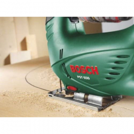 Scie sauteuse filaire Bosch PST 650. Moteur de 500 watts. Profondeur de coupe de 65 mm dans le bois. Profondeur de coupe dans l'acier 4 mm. Nombre de courses à vide 3 100 coups/min. Système SDS. Système Low vibration. Coupe jusqu'à 45°. Poids 1,6 kg.