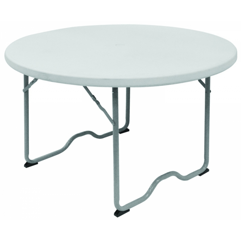 Table pliante ronde polypropylène GARDEN DELUXE. Structure pliante en tube d'acier Ø 25 mm. Plateaux en polypropylène. Couleur blanche. Dimensions de la table : Ø115xH73 cm. Camping Réceptions festivals évènements.