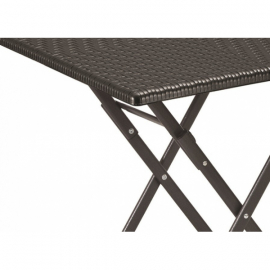 Table pliante carrée GARDEN DELUXE. Structure pliante en acier laqué époxy. Plateau en résine effet rotin. Couleur : noir. Dimensions 61x61xH73cm. Camping Jardin Récéption.