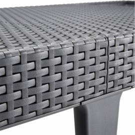 Cette chaise longue ultra solide et robuste, résiste parfaitement aux intempéries. L'effet rotin de sa structure et sa couleur gris anthracite se mariera parfaitement avec votre extérieur.