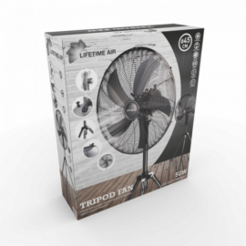 Ventilateur 3 pieds 50W avec hélice métal diamètre 45 cm LIFETIME AIR Produit Haute qualité. Grande Stabilité grâce au trépied. Parfait pour brasser l'air et rafraîchir votre pièce Doté de 3 vitesses. Fonction oscillante et Inclinable. Couleur : Gris mat. Alimentation électrique : 230V - Fréquence : 50/60Hz. Dimensions : 140 x 76 x 84 cm. Hauteur réglable : 125-154 centimètres. Poids 6 kg.